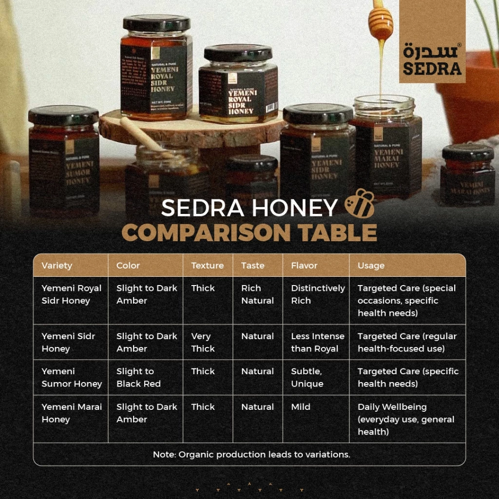 Royal Sidr: Thick, dark, luxurious flavor; highly prized for wellness
